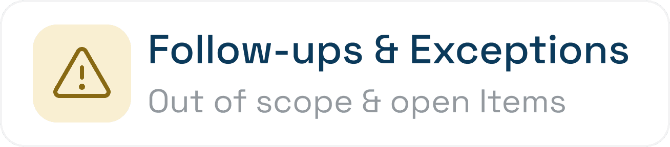 A consistent control layer across the lifecycle: approvals, decision history, scope boundaries, and traceability — with auditability built in.